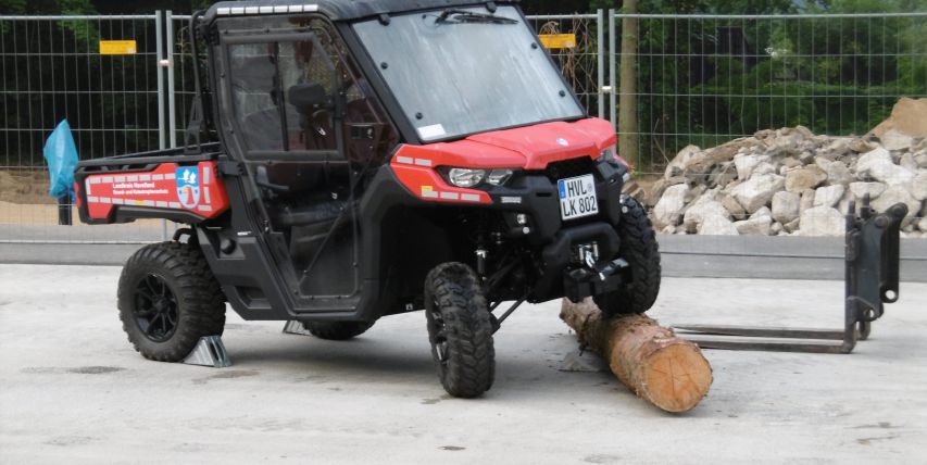 Das THW-Ausbildungszentrum aus Brandenburg an der Havel wird einen 14 Tonnen Radlader ausstellen, der gekoppelt an eine VR-Brille visuell gesteuert werden kann, ohne dass sich das Fahrzeug selbst bewegt.